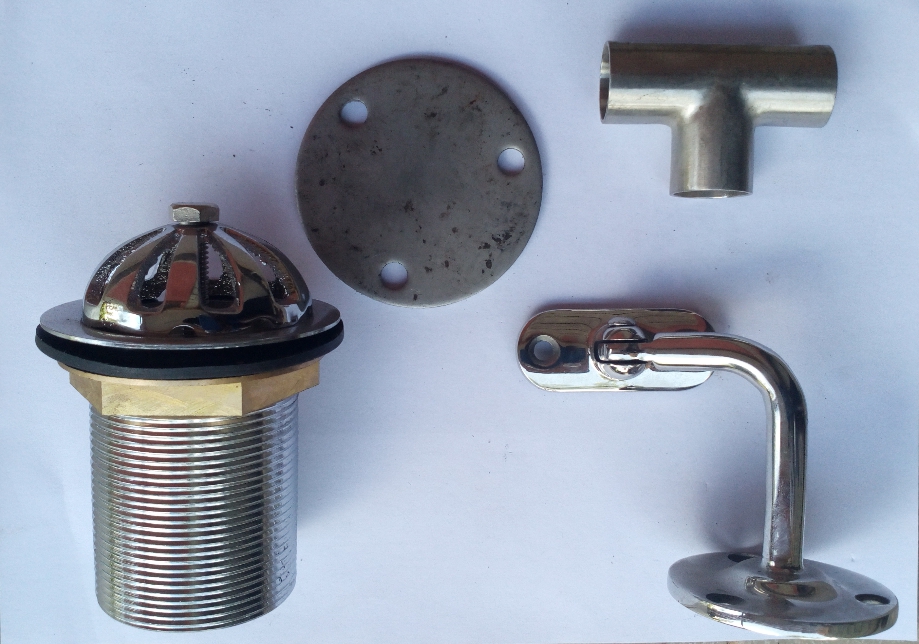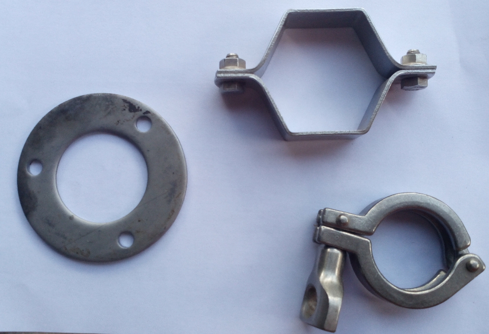 Stainless steel tubes type tee, sockets, welded butterfly valves, non-return valves, ball valves, 90 degree elbows, pipe clamps, barrel nipples, tees.